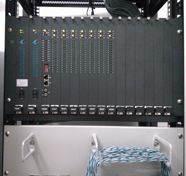 1個(gè)局端中心站,通過光纜傳輸238門電話信號(hào)和網(wǎng)絡(luò)信號(hào)到3個(gè)遠(yuǎn)端用戶站,其中遠(yuǎn)端1(42號(hào)辦公樓)下190門電話,遠(yuǎn)端2(2號(hào)辦公樓)下40門電話,遠(yuǎn)端3(導(dǎo)購(gòu)中心)下8門電話。